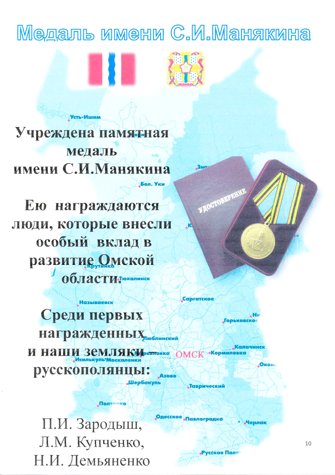 Также президент фонда предложил учредить медаль имени С.И. Манякина, которой будут награждаться лучшие омичи. Бонковский посетовал, что сейчас простому омичу, выращивающему хлеб или производящему молоко, практически нереально получить государственную награду.